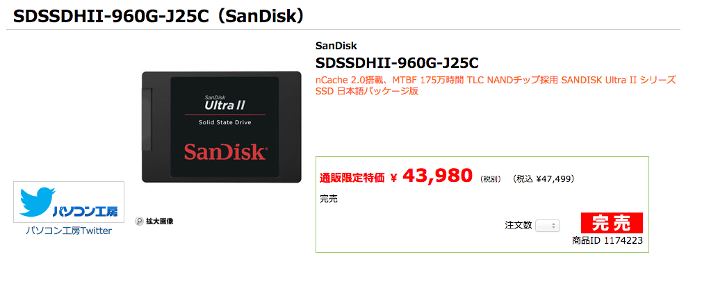 まぁ、960GB!ってことで飛びついたのですが、よ〜くみたらTLC(つまりMLC-3ってこと)ですので安いけど怖いって思い、ちょっと躊躇していたところで知らぬうちに完売になってPC工房さんのリストから抜け落ちていた。