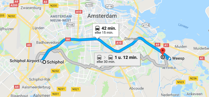 場所はアムステルダム・スキポール空港から電車と徒歩で45分くらいのところである。