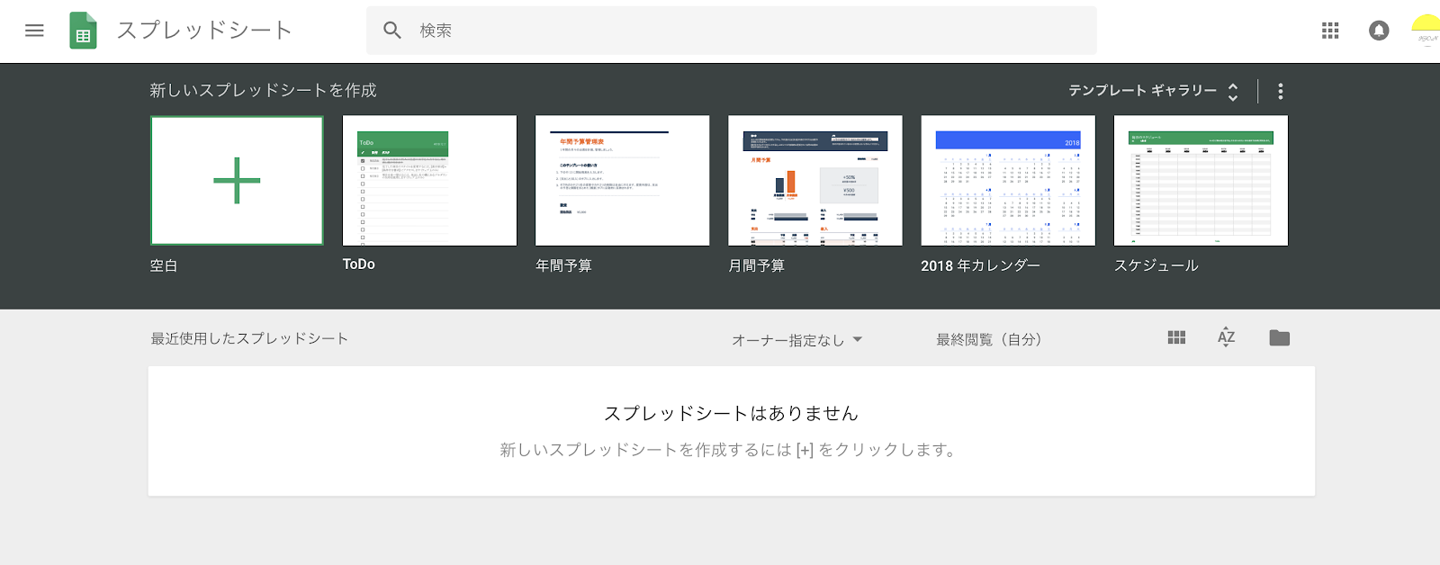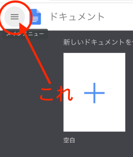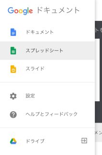 表計算の「スプレッドシート」は「ドキュメント」を開いてからアクセスできます