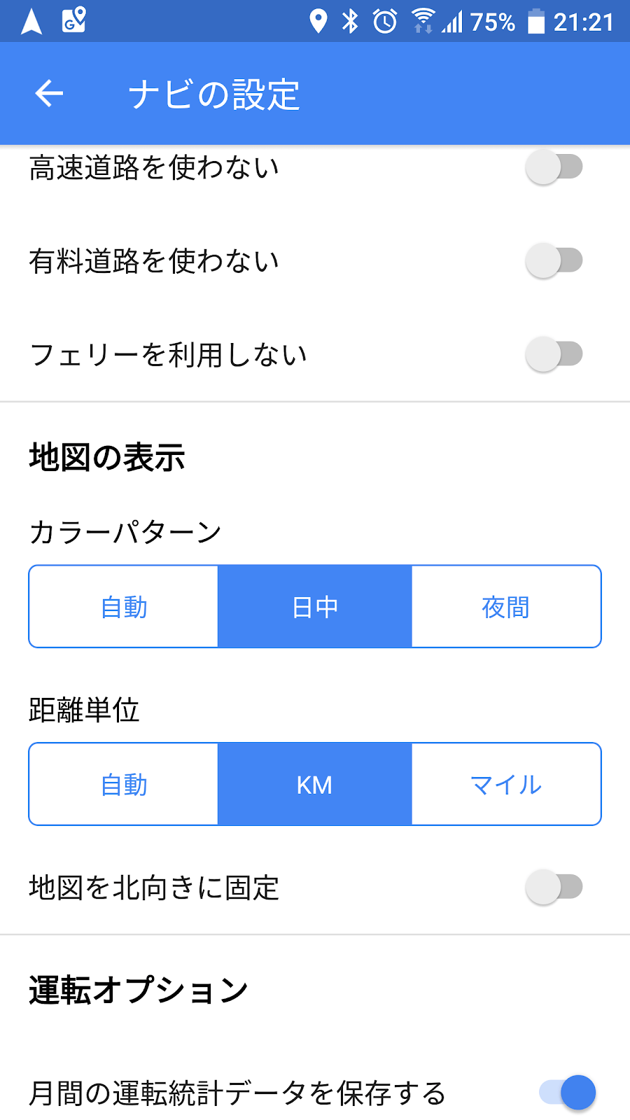 とくに道路に暗い色の渋滞マークがついたりすると、暗く反転されると、その道や文字が読みづらくなるので、断固たるナイトモード反対派なんです。