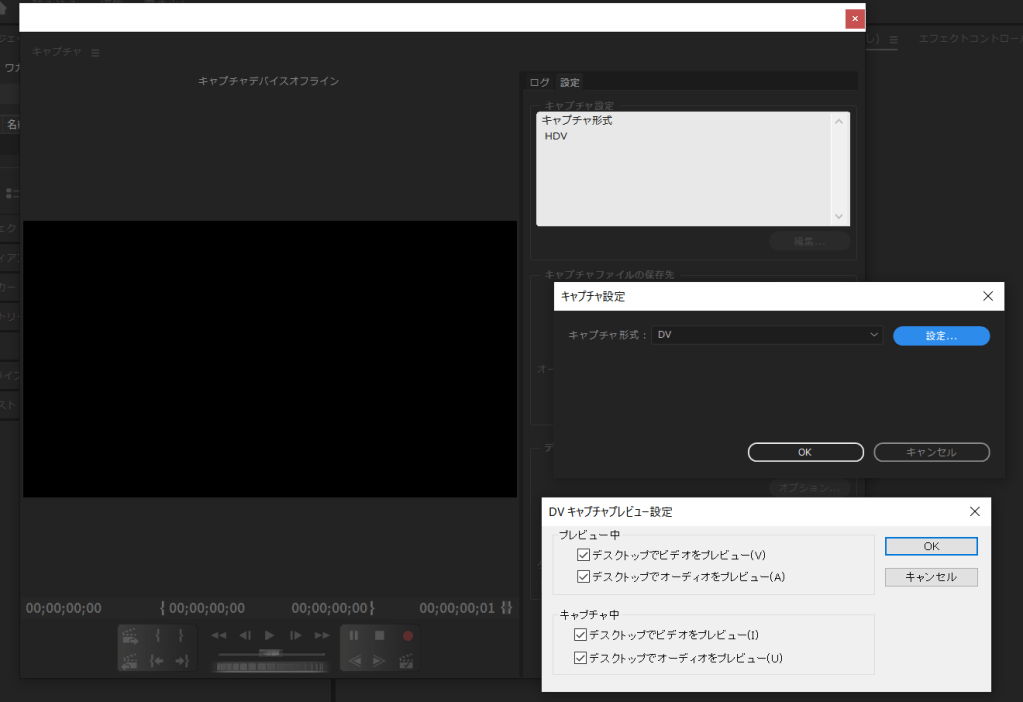 ここで設定の変更がデフォルトのキャプチャ設定がHDVになっているのでキャプチャ形式を「DV」にする必要があります。(AVDC-300はDVなので)。