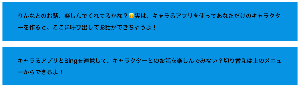 キャラるアプリとBingを連携して、キャラクターとのお話を楽しんでみない?切り替えは上のメニューからできるよ!