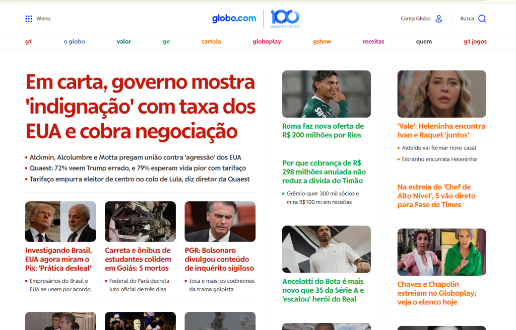 更にGlobo.comを見ていただけるとわかるのが、サイトは単なるニュースサイトである。